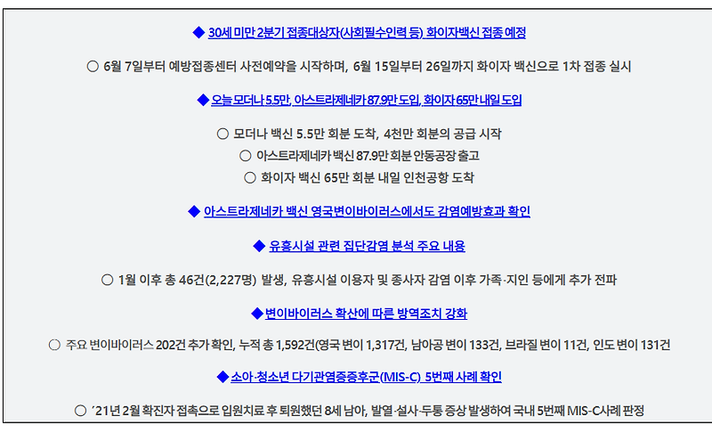 코로나19 백신 1차 누적 접종자가 540만 명을 넘어선 가운데, 모더나와 얀센 백신이 이번 주 중에 들어옵니다. Who 코로나19, 인구 70% 백신 맞을 때까지 안끝나. Google 뉴스에서 코로나19의 영향을 받는 지역에 관한 지도, 통계, 뉴스를 확인하세요. 백신 접종시 가족 10명 모임 가능…7월부터 실외 '노마스크' 허용도. 안녕하세요 코로나 19와 백신에 대한 글을 올려드리는 여왕의심복입니다.